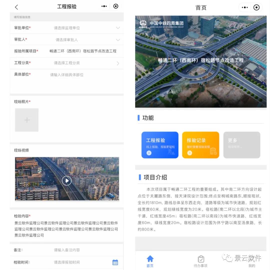 畅通二环报验平台是中铁四局集团针对合肥畅通二环宿松路节点工程施工报验环节开发的线上平台,由合肥景云软件承建开发,可实现线下施工报验线上提交一键审批,施工影像实时上传、自动归档、做到施工报验可审批,可查验、易归档、能追溯。