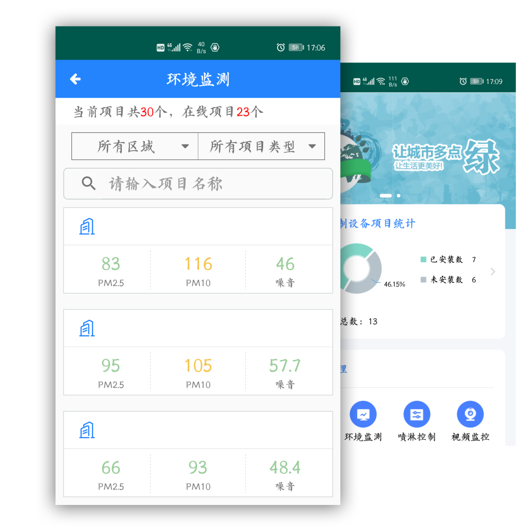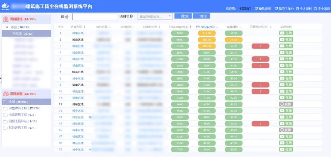 所有相关监测数值可在监控系统显示器及移动客户端或PC端进行查看,达到自动检测、污染治理自动控制的目的,这样一套“实时监控、即时通报、智能分析、自动降尘”的环境监测及降尘除霾联动控制系统开启了扬尘治理新模式,大大节约了人力物力。