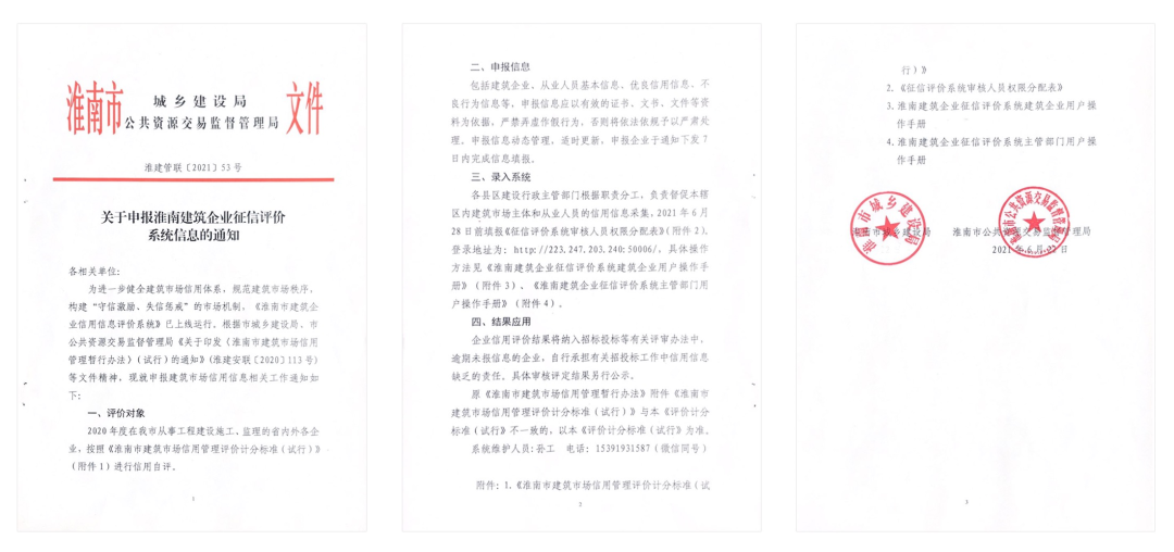 为进一步健全建筑市场信用体系,规范建筑市场秩序,构建“守信激励、失信惩戒“的市场机制,淮南市建筑企业信用信息评价系统于2021年6月底正式上线运行,这是淮南市工程建设领域监管模式和监管手段的又一次重大创新。依托信用平台,可以有效地加强审批、监管、执法协调联动,构建建筑市场监管新格局。同时,以信用为抓手,全面提升建筑业企业的行业自律意识和诚信意识。