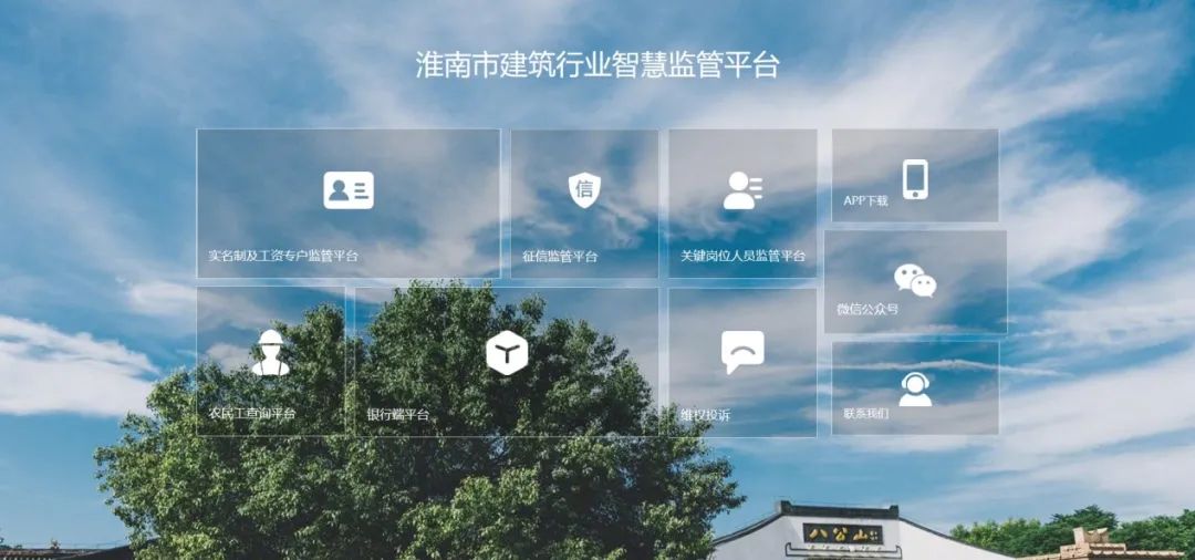系统集企业登录平台、主管部门登录平台、银行登录平台、农民工查询平台、信用公示平台、关键岗位人员监管平台、实名制接入等功能为一体,通过平台综合管理打造成淮南智慧工地门户网站。通过首页可以实现APP下载、微信公众号和联系我们,支持维权投诉。