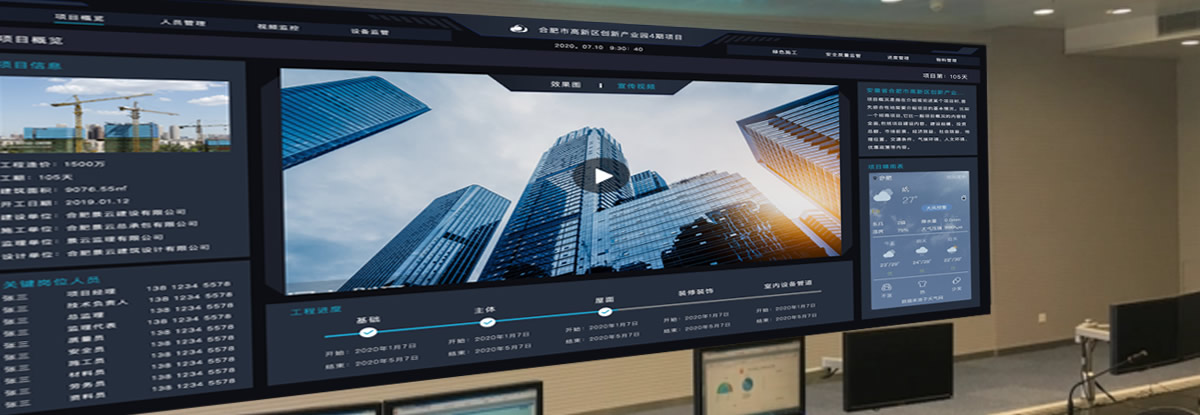 大屏展示各类监测、管理和决策的数据,施工现场管理人员通过平台看到所有相关信息,随时模拟演练等,以实现安全、绿色施工的目的。