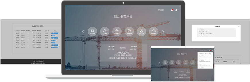 基础数据平台维护项目数据,定制解决人员、质量安全、绿色施工、进度管控等重点问题,做为项目工作人员的核心平台,录入各类数据,体现业务流程,并统计分析与中控中心进行数据交互。