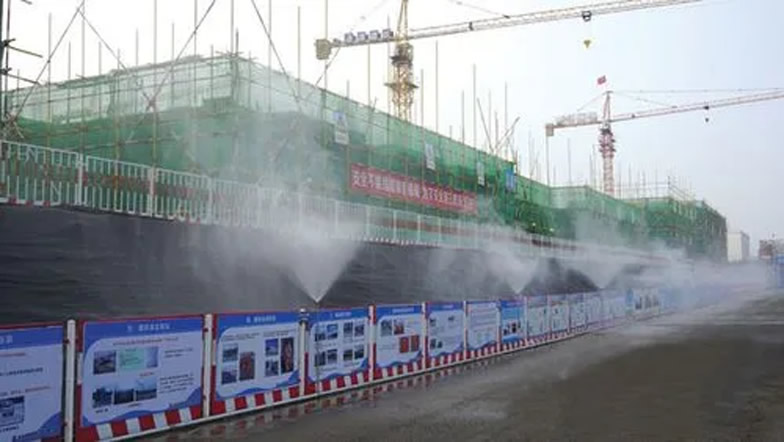 通过在施工现场布设带有GPS模块的环境监测仪,可以对施工现场的PM2.5、PM10、风速、风向、噪声、 温湿度等前端感知设备数据信息搜集、整合、分析,在平台端展现各项信息,对超出预设阈值信息进行告警, 同时自动开启各类的远程降尘喷淋,降至阈值点之下,关闭喷淋,实现绿色施工的目的。