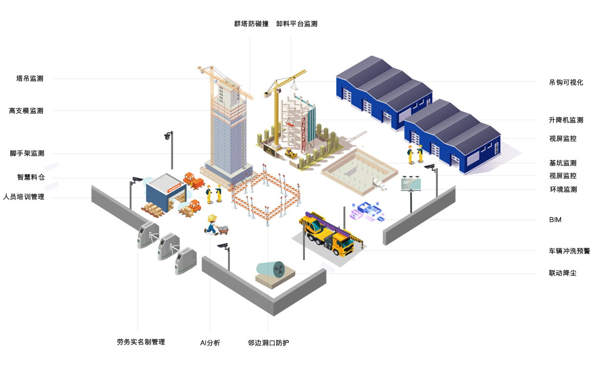 重大危险源、危大工程/移动巡检/高支模监测/基坑监测/脚手架监测/水电监测/邻边重点区域保护/人员安全设备安全