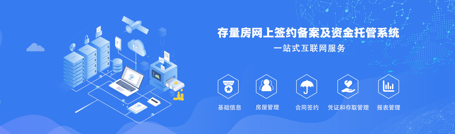系统建成后集信息发布、挂牌管理、网上合同签订备案、资金托管功能为一体达到全面规范房地产市场行为,实现房地产市场信息数据的实时采集的信息平台。