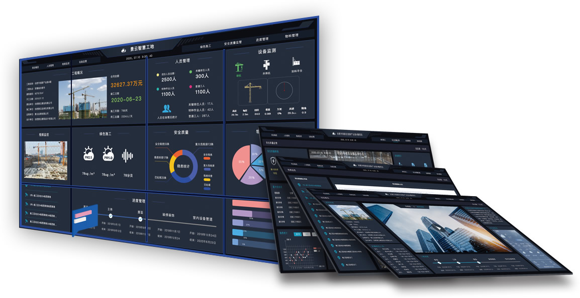 利用视频监控+GIS技术,在施工平面图上标注各种摄像头的位置,项目管理人员可通过点击施工平面图上摄像头图标查看实时监控,同时系统支持历史视频查询、分屏浏览、即时回放等功能,对满足条件的摄像头还可以支持云台控制。